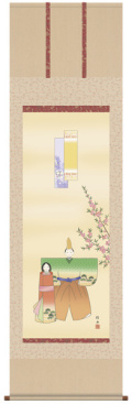 女児の健やかな成長を祝う優しいお顔 【立雛 掛軸】作家・・・・・・・長江 桂舟 寸法・・・・・・・190cm×54・5cm 表装・・・・・・・吉祥小紋緞子本表装 軸先・・・・・・・陶器 桐箱畳紙収納・表装品質十年間保証付き・日本製 掛軸は完全受注生産のため納期には1週間~10日程かかります。表装したばかりの新品の掛軸お届けします。 手作業による仕上げのため、掲載写真と多少異なる場合がございます。表装柄が掲載写真と異なる場合がございます。