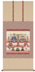桃の節句をより一層華やかに演出する逸品 【段飾り雛 掛軸】作家・・・・・・・伊藤 香旬 寸法・・・・・・・120cm×54・5cm 表装・・・・・・・洛彩緞子本表装 軸先・・・・・・・陶器 桐箱畳紙収納・表装品質十年間保証付き・日本製 掛軸は完全受注生産のため納期には1週間~10日程かかります。表装したばかりの新品の掛軸お届けします。 手作業による仕上げのため、掲載写真と多少異なる場合がございます。表装柄が掲載写真と異なる場合がございます。